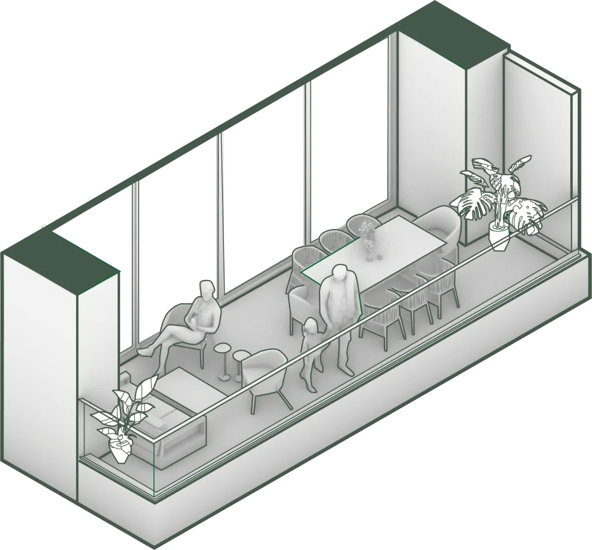Nos aseguramos de que tu espacio tenga un área amplia conectada al exterior. Habilitamos un escenario único e íntimo que permite un sinfín de nuevas posibilidades.